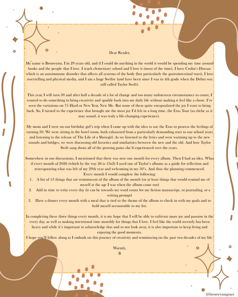 As, you know, this year is all about reclaiming my hours outside of the classroom. Here is the challenge I have set for myself. Feel free to follow along on my Instagram @bronwnngrace.